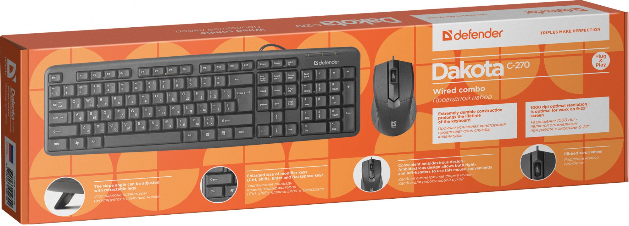 | Особенности комплекта | Прочная усиленная конструкция продлевает срок службы клавиатуры. Классическая раскладка. Угол наклона клавиатуры регулируется с помощью ножек. Увеличенная площадь клавиш-модификаторов (Ctrl, Shift), клавиш Enter и BackSpace. | |