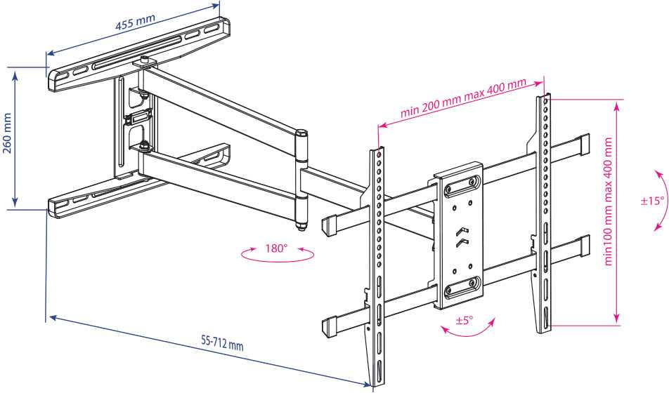 | Описание | Легкий монтаж при помощи съемной монтажной пластины. Мощная стальная конструкция. Универсальный телевизор на кронштейне можно наклонить, повернуть и сдвинуть к стене. Максимальный вылет от стены 712 мм. Корректировка экрана уникальная возможность вращения экрана на ±5° относительно стены. | |