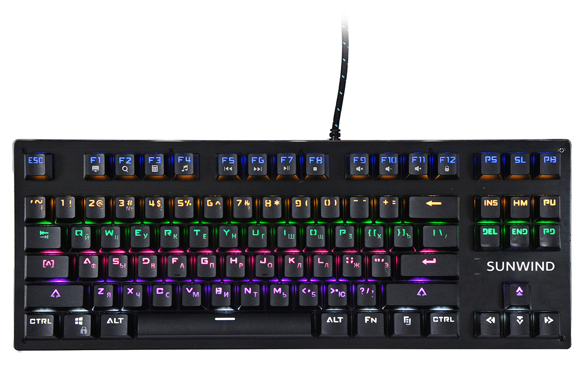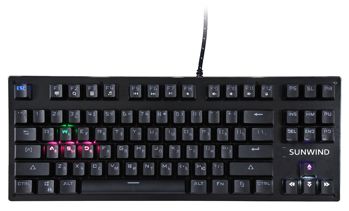 | Особенности | Компактная игровая механическая клавиатура, кабель в прочной оплетке, мультимедийные функции, блокировка клавши Пуск в игровом режиме, 20 режимов подсветки клавиатуры, управление подсветкой | |