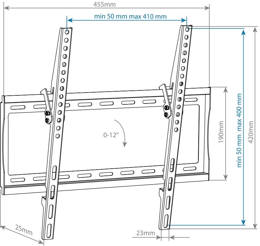 | Описание | Кронштейн STEEL-4, для LED/LCD/PLASMA телевизоров 22"-65", max 40 кг, настенный, 1 степень свободы(наклон 0 -12 ), от стены 25 мм, max VESA 400x400 мм, крепление направляющей с "двойным крючком" | |