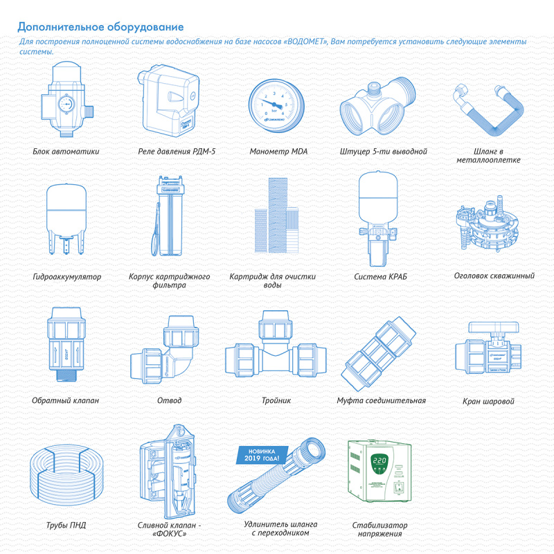 | Особенности | "ВОДОМЕТ" 55/50 ок, предназначен для подачи чистой воды из скважин (диаметром от 110 мм и более), колодцев, резервуаров и открытых водоемов, для комплектации систем автоматизированного водоснабжения дома, орошения сада. Способен работать в частично погруженном состоянии! | |