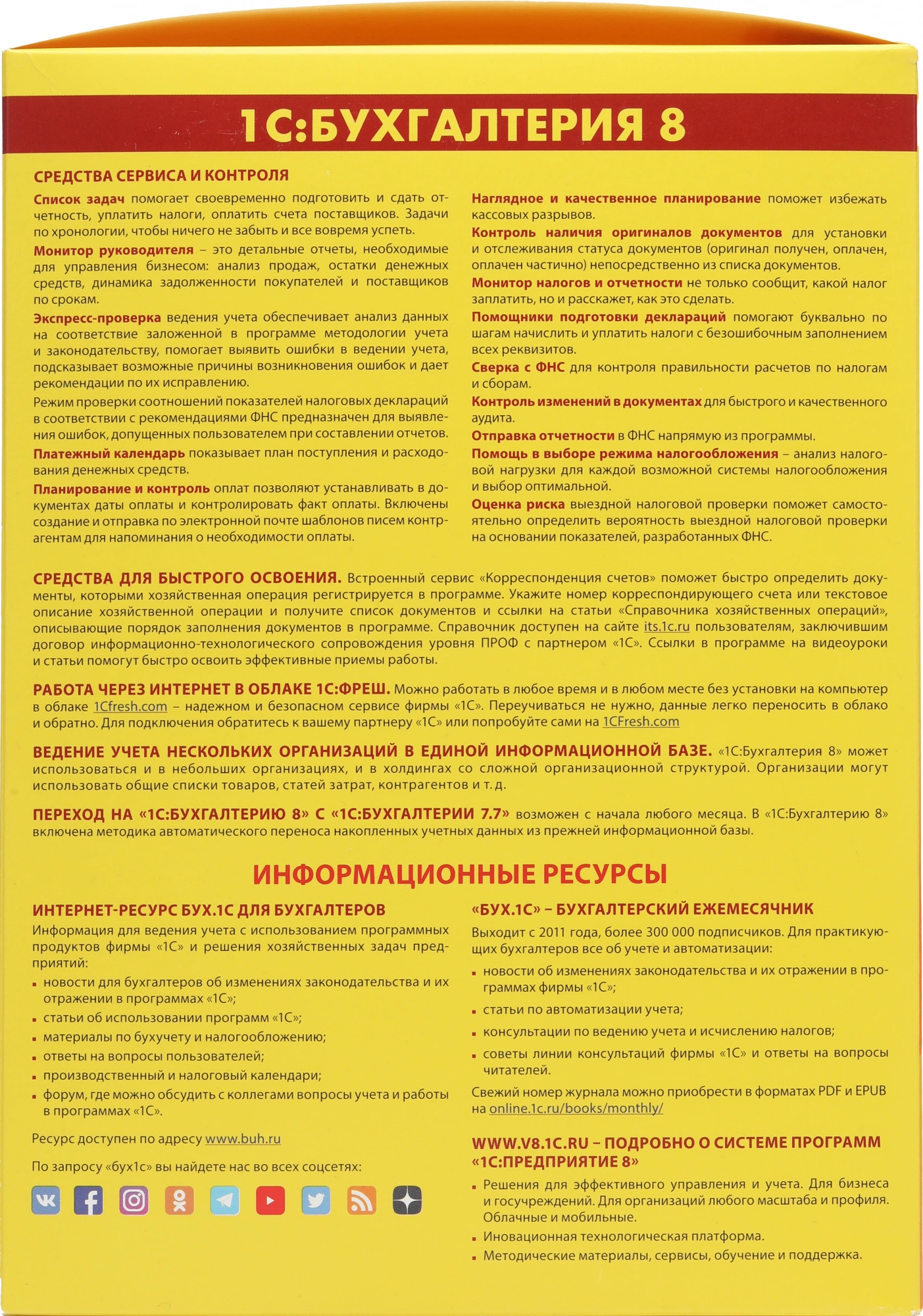 | Полное Описание | Полная функциональность бухгалтерского учёта и отчётности хозрасчётных организаций или ИП | |