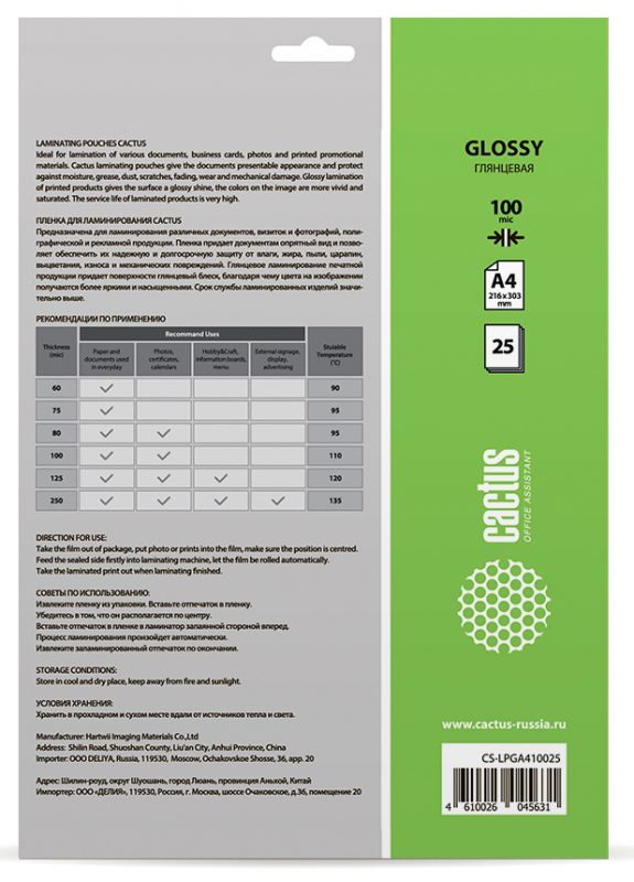 | Тип | Пленка для ламинирования | |