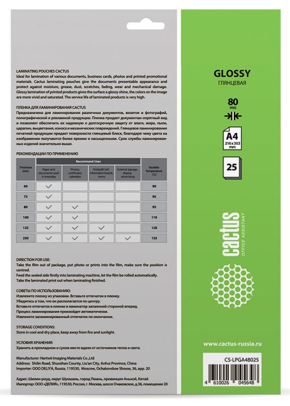 | Тип | Пленка для ламинирования | |