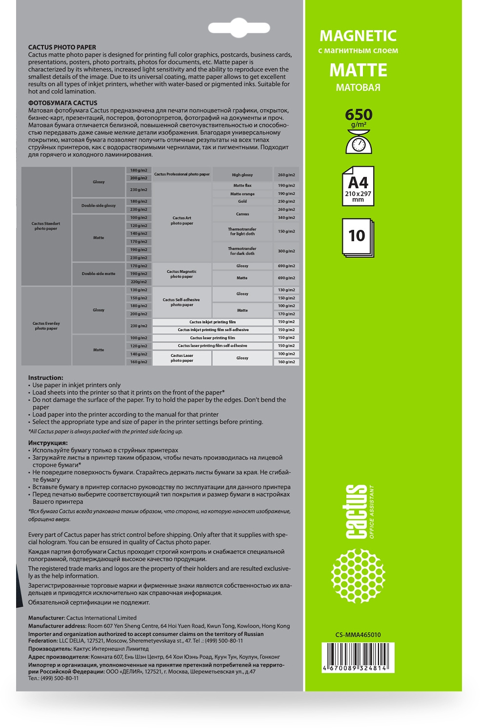 | Тип | Фотобумага | |