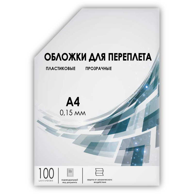 Обложки для переплета пластик A4 (0.15 мм) прозрачные 100 шт, ГЕЛЕОС [PCA4-150]