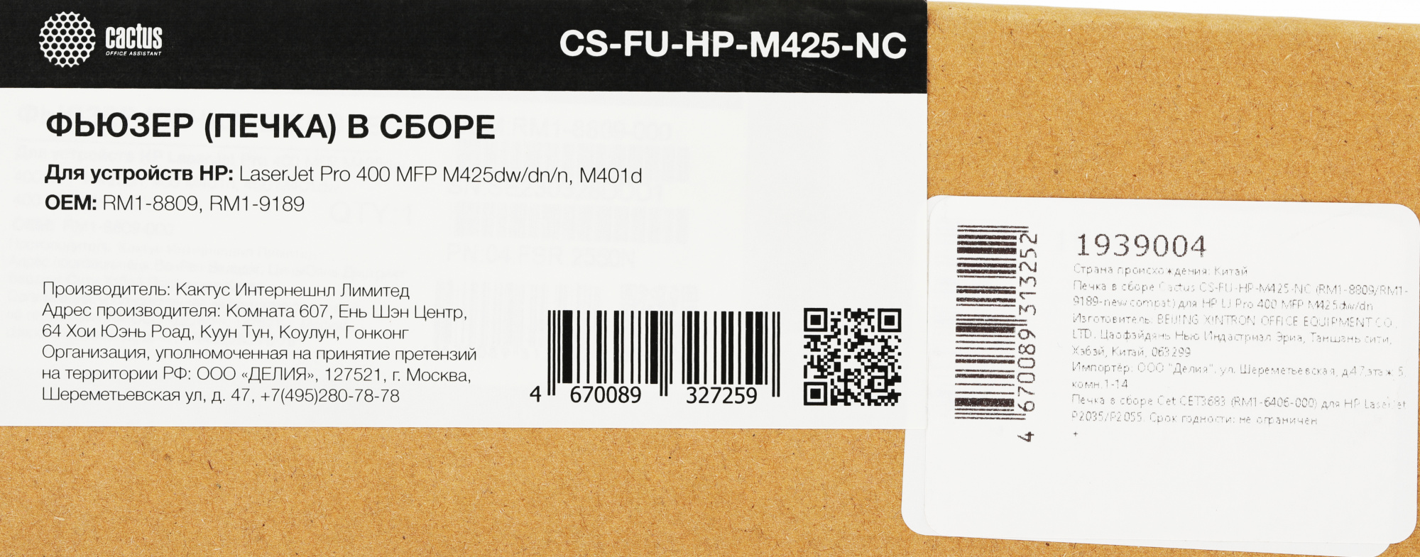| PartNumber/Артикул Производителя | CS-FU-HP-M425-NC | |