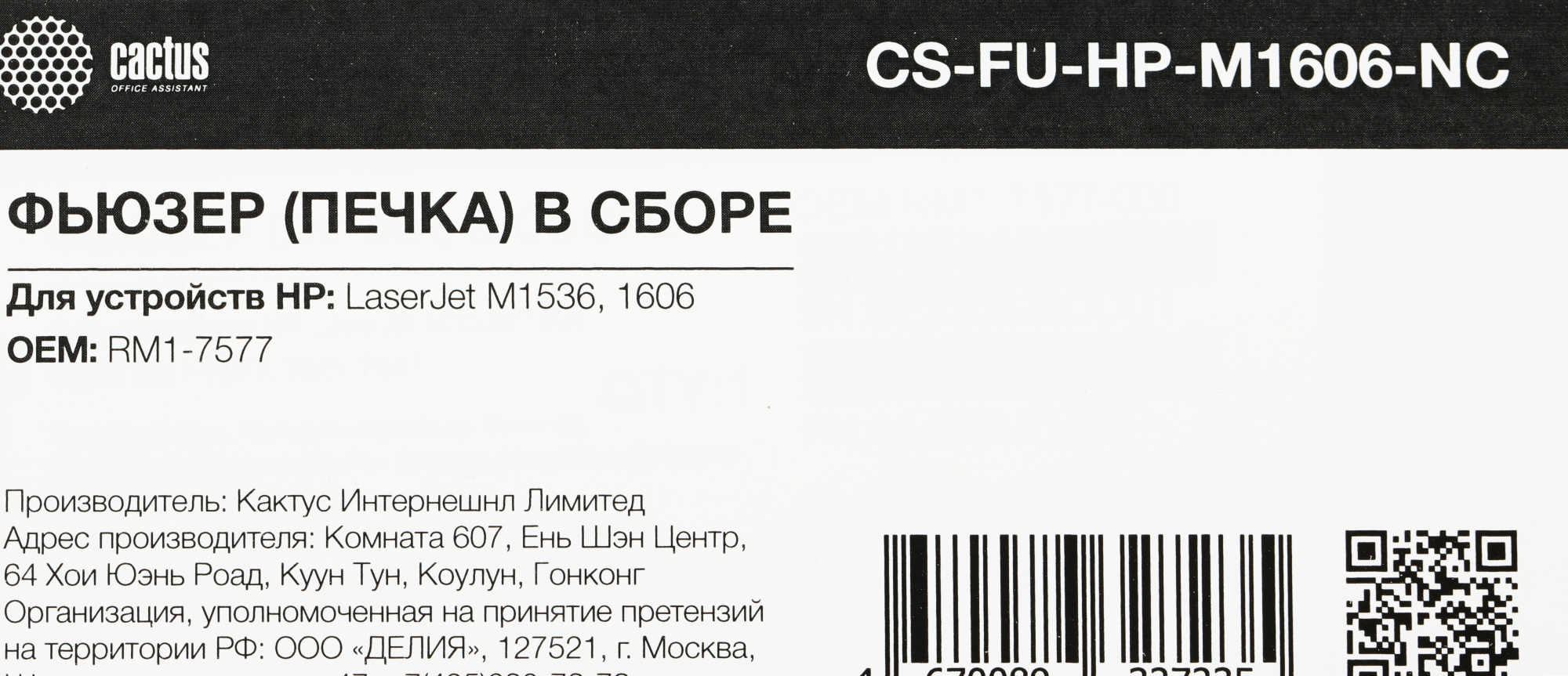 | PartNumber/Артикул Производителя | CS-FU-HP-M1606-NC | |