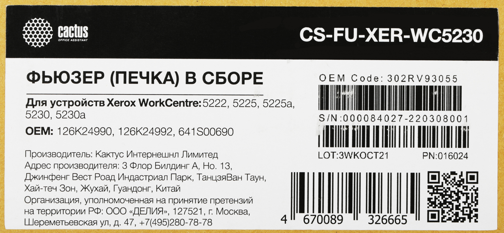 | PartNumber/Артикул Производителя | CS-FU-XER-WC5230 | |
