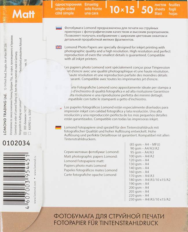 | Тип | Фотобумага | |