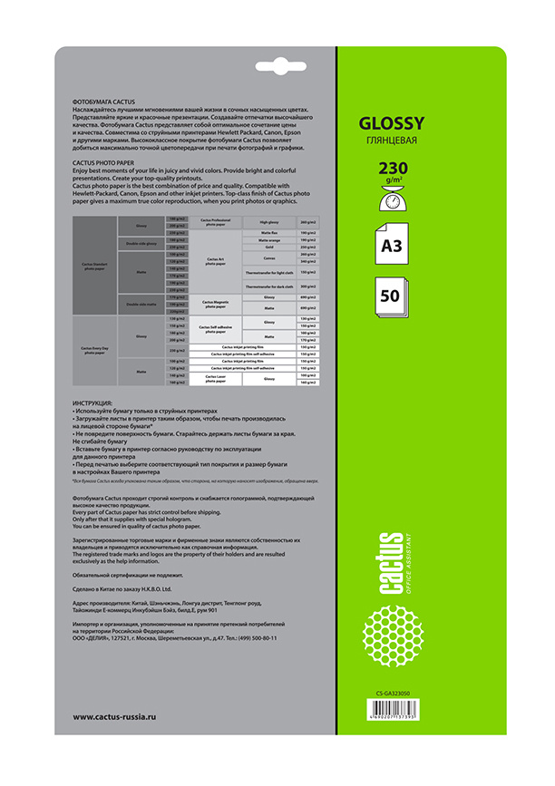 | Тип | Фотобумага | |