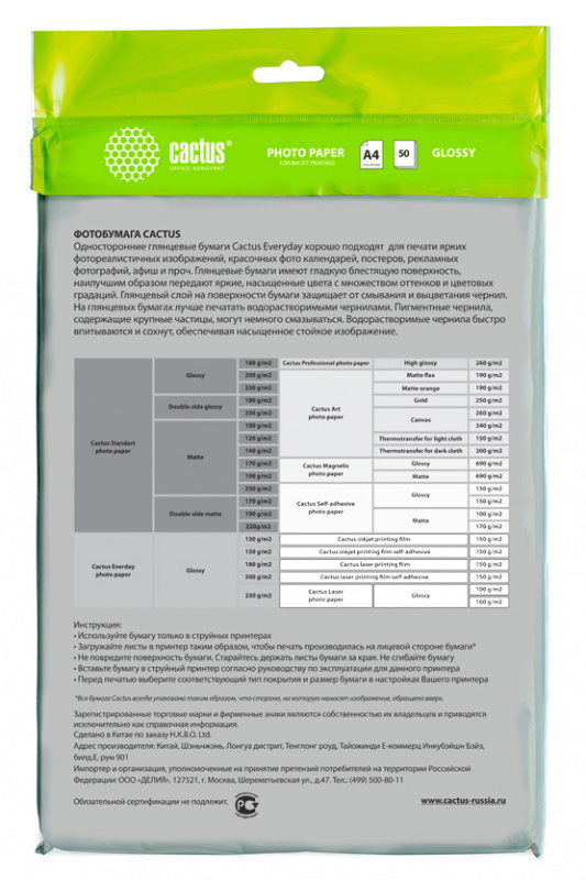 | Тип | Фотобумага | |