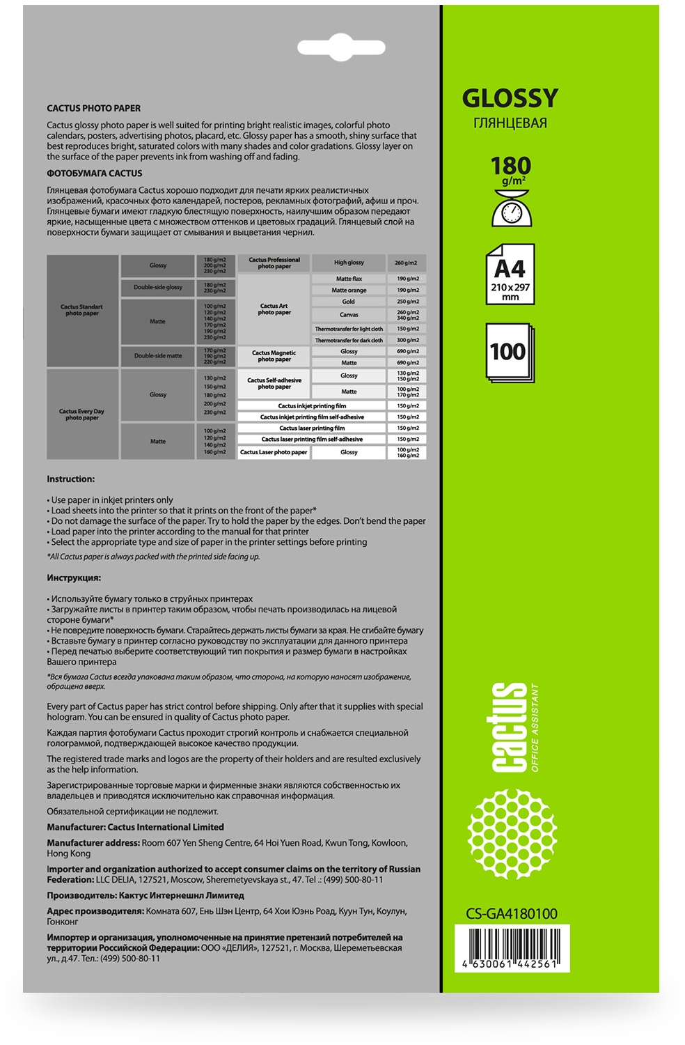 | Тип | Фотобумага | |