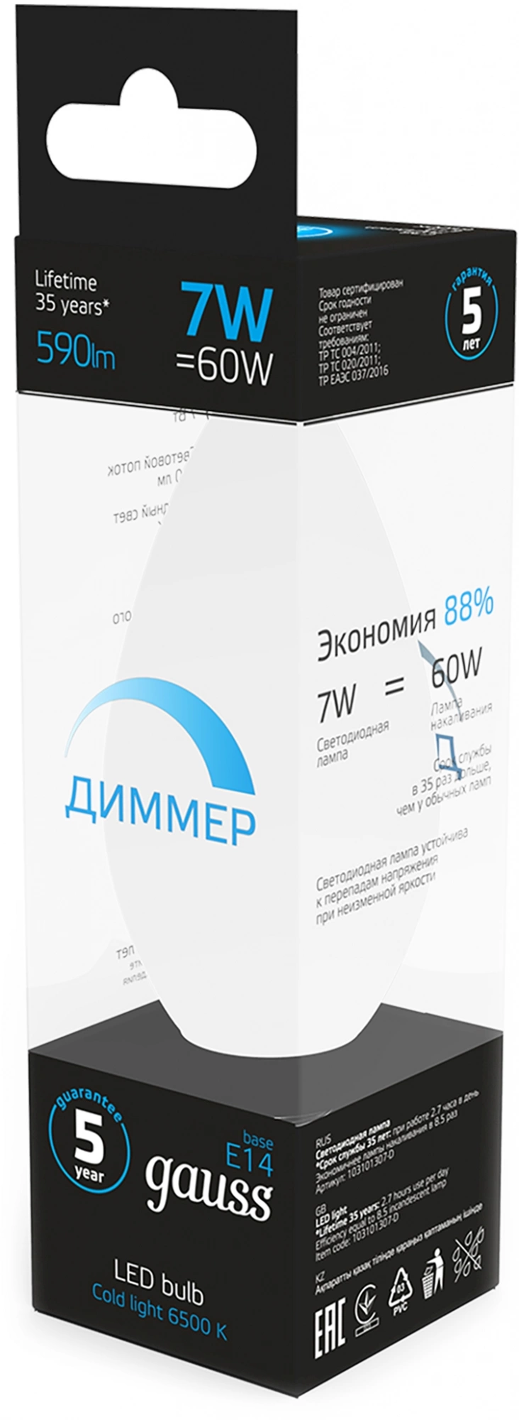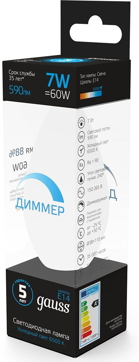 | Ссылка на сайт поставщика/вендора | https://b2b.gauss.ru/catalog/upravlyaemye-lampy/lampa-gauss-svecha-7w-590lm-6500k-e14-dimmiruemaya-led-1-10-100/ | |