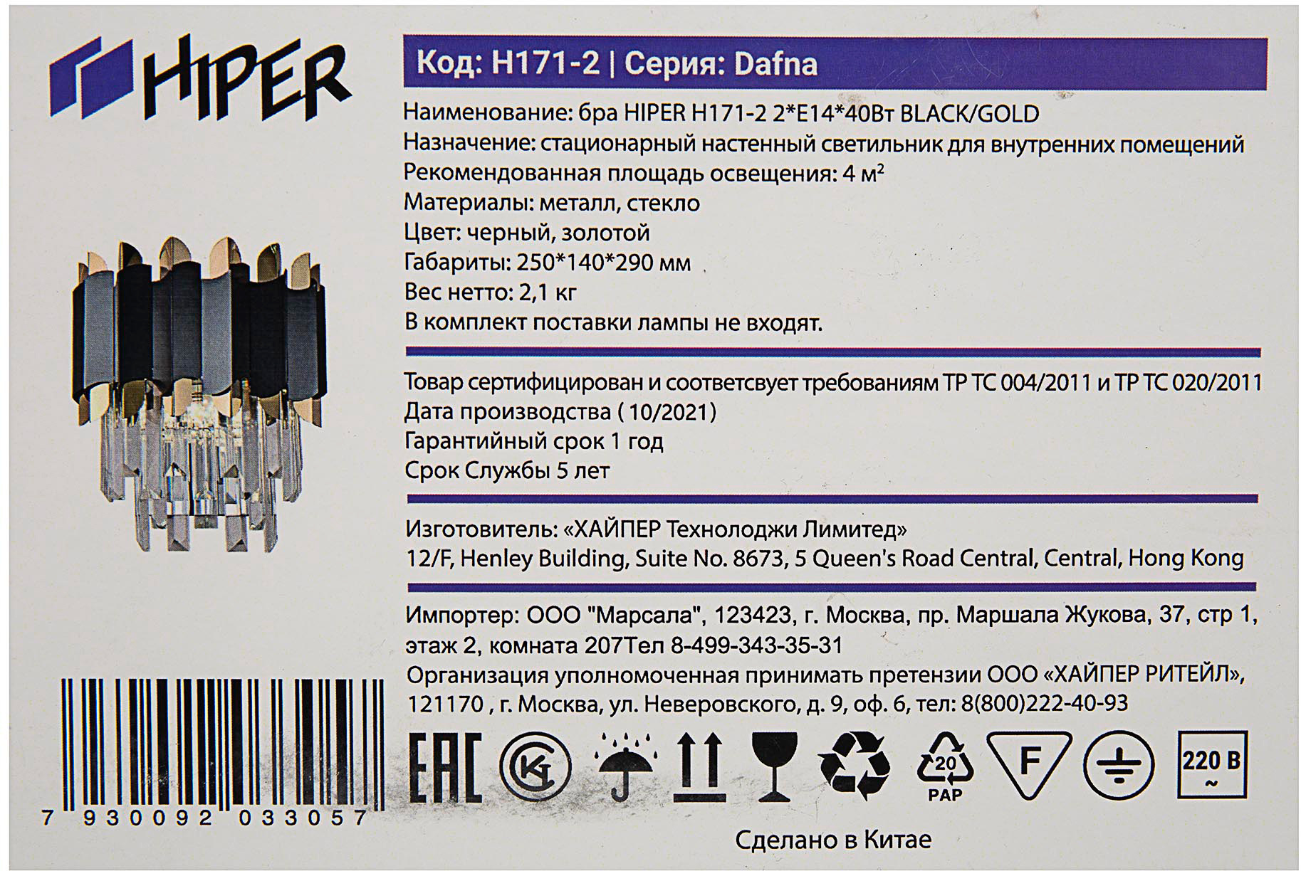 | Ссылка на сайт поставщика/вендора | https://www.vamsvet.ru/catalog/product/bra_hiper_dafna_h171_2/ | |