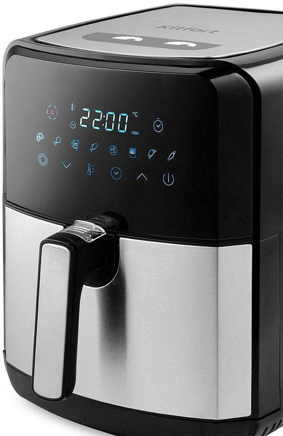 Особенности Стильный и компактный аэрогриль Kitfort КТ-2239 может использоваться как аэрогриль, а также как аэрофритюрница, духовка и сушилка и позволяет готовить большинство продуктов с минимальным количеством масла или вовсе без его добавления.