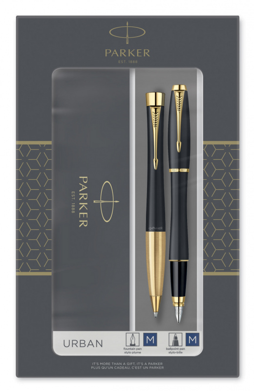 Набор ручек Parker Urban Core FK200 (2093381) Muted Black GT сталь нержавеющая подар.кор. ручка перьевая, ручка шариковая
