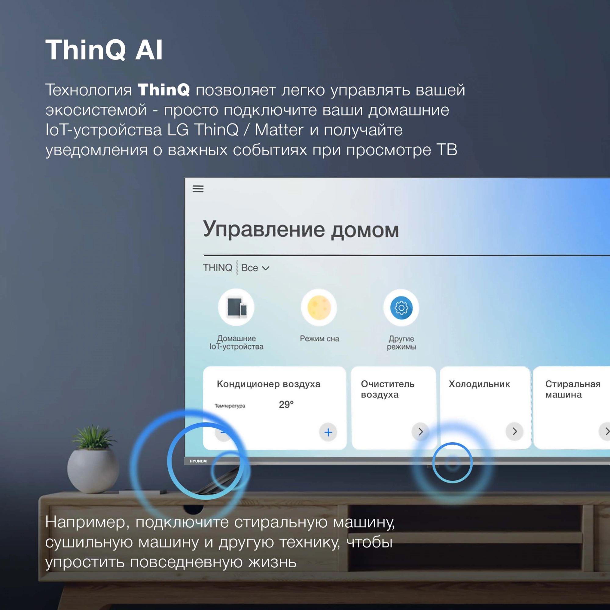| Поддерживаемое управление со смартфона | LG ThinQ | |