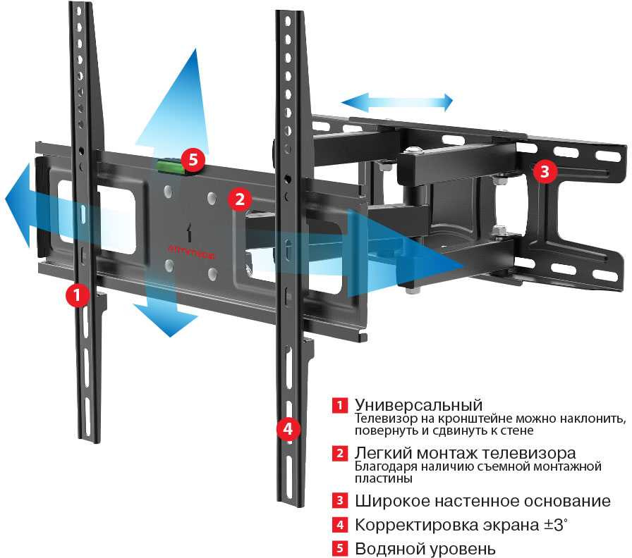 | Описание | Универсальный - телевизор на кронштейне можно наклонить, повернуть и сдвинуть к стене. Легкий монтаж телевизора - благодаря наличию съемной монтажной пластины. Широкое настенное основание. Корректировка экрана ±3°. Водяной уровень. | |