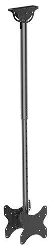Описание Потолочный кронштейн для LCD/LED телевизоров размером от 15 до 48 дюймов с максимальным весом до 2x45 кг. с возможностью крепления на наклонный потолок. Надежная стальная конструкция. Регулировка наклона +5 -20 и углом поворота ±180 градусов. Максимальные крепежные размеры 200х200 мм.