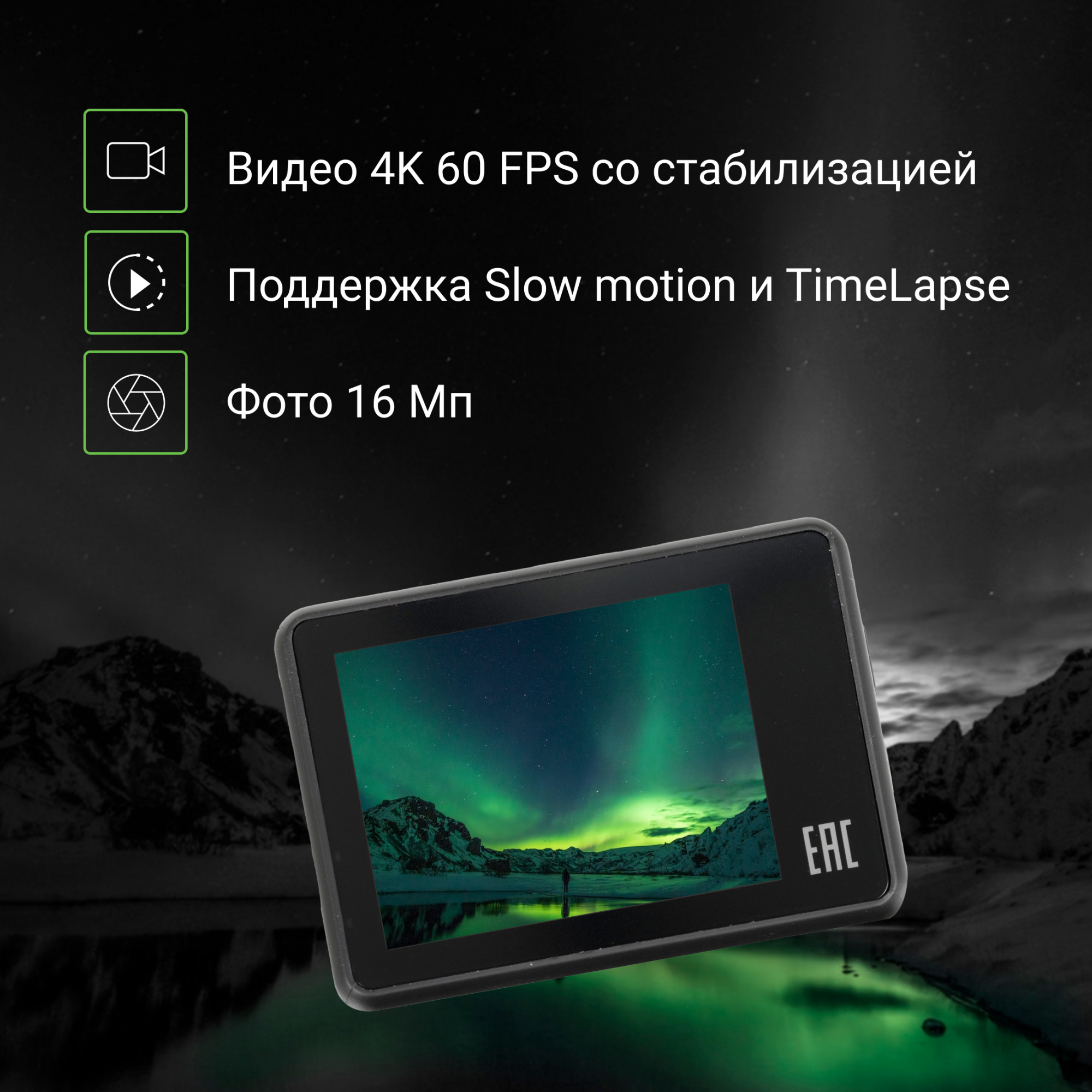 | Тип | Экшн-камера | |