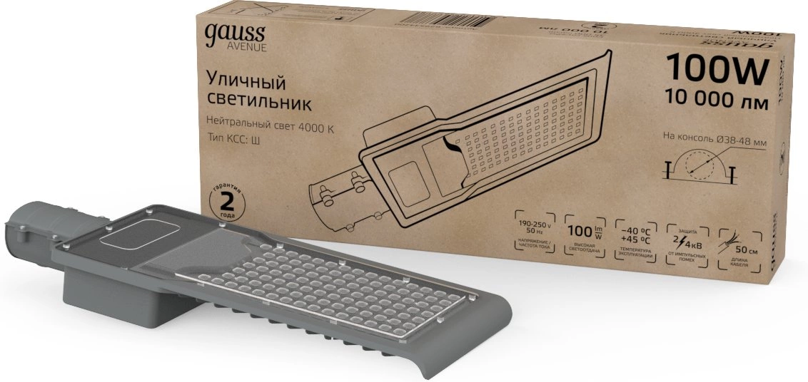 | Описание | Уличные консольные светодиодные светильники Gauss модели Avenue предназначены для наружного освещения дворов, парковых аллей, прогулочных дорожек, придомовых территорий, автостоянок, площадей, улиц и дорог с малой и средней интенсивностью движения. | |