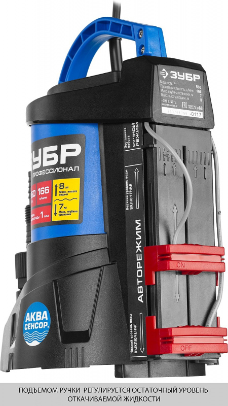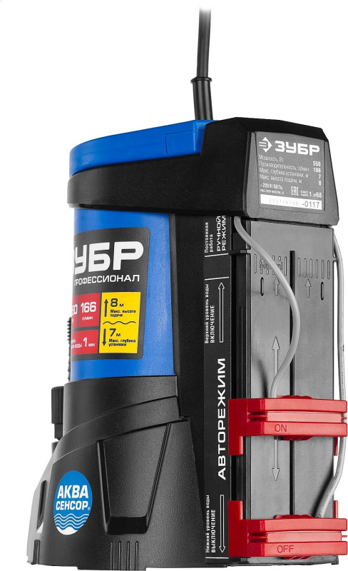 | Особенности | Откачивание жидкости до остаточного уровня 1 мм, т.е. практически досуха. Встроенные датчики уровня воды АкваСенсор обеспечивают автоматическое включение/выключение насоса. Универсальный соединительный штуцер от 1'' до 1 1/2''. Кабель длиной 10 м может использоваться даже на большой глубине. | |