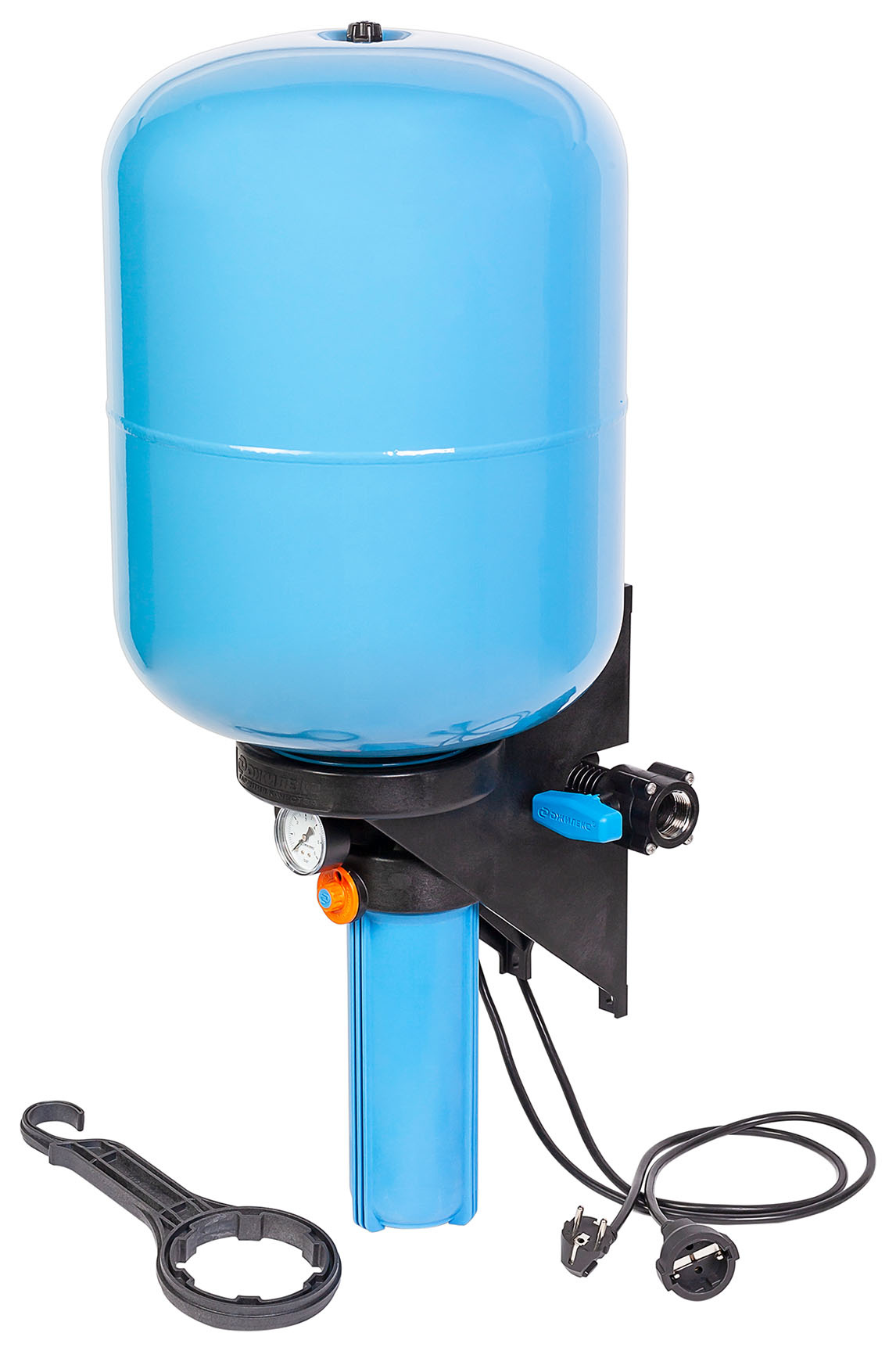 | Комплектация | Гидроаккумулятор со сменной мембраной и воздушным клапаном, манометр, шаровый кран, обратный клапан, реле давления, резьбовая заглушка для сброса воды из корпуса фильтра, корпус для картриджного фильтра, съемный коллектор, ключ колбы фильтра, вилка, розетка. | |