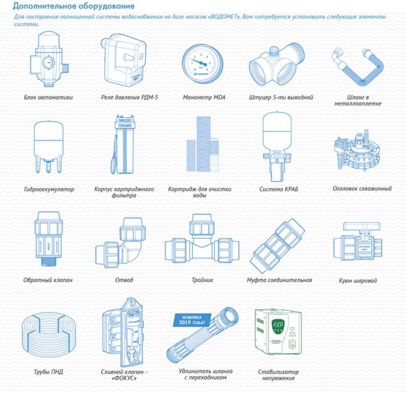 | Особенности | "ВОДОМЕТ" 55/35 ок, предназначен для подачи чистой воды из скважин (диаметром от 110 мм и более), колодцев, резервуаров и открытых водоемов . Способен работать в частично погруженном состоянии! | |