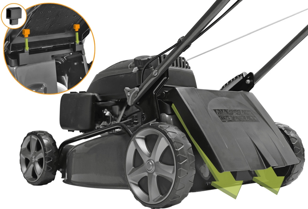 | Особенности | Три режима стрижки травы; Индикатор накопления травосборника; Система самоочистки AutoWash; Система измельчения травы для удобрения почвы Eco Clip; Мощный двигатель для высокой производительности; Центральный рычаг регулировки высоты скашивания; Регулируемая складная рукоятка; Прочная стальная дека | |