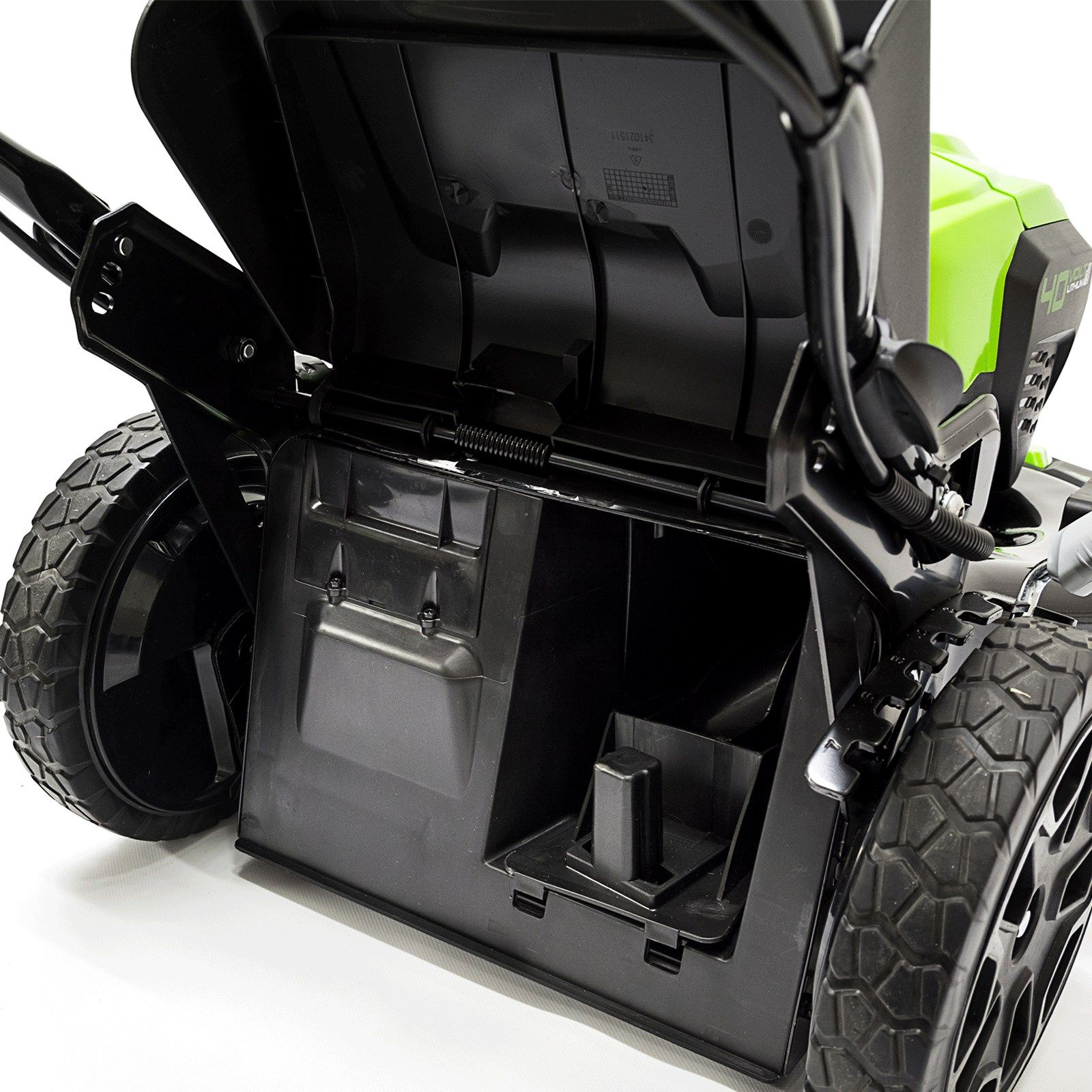 | Особенности | Бесщёточный мотор DigiPro. Самоходная функция. Мощность, сопоставимая с бензиновыми аналогами. Возможность установки двух аккумуляторных батарей. Система защиты двигателя от механических повреждений. Складная ручка для удобства хранения. | |