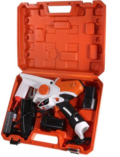 | Комплектация | Пила цепная, пильная шина, пластиковый защитный кожух шины, пильная цепь, аккумуляторная батарея (2 шт), бутылка для масла, зарядное устройство, инструкция по эксплуатации, инструкция по безопасности | |