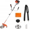 | Комплект поставки | Двигатель в сборе, Трансмиссионный узел, Рукоятка левая, Плечевой ремень, Защитный кожух, Триммерная катушка, Металлический нож, Зип комплект, Канистра для приготовления топливной смеси, Инструкция | |