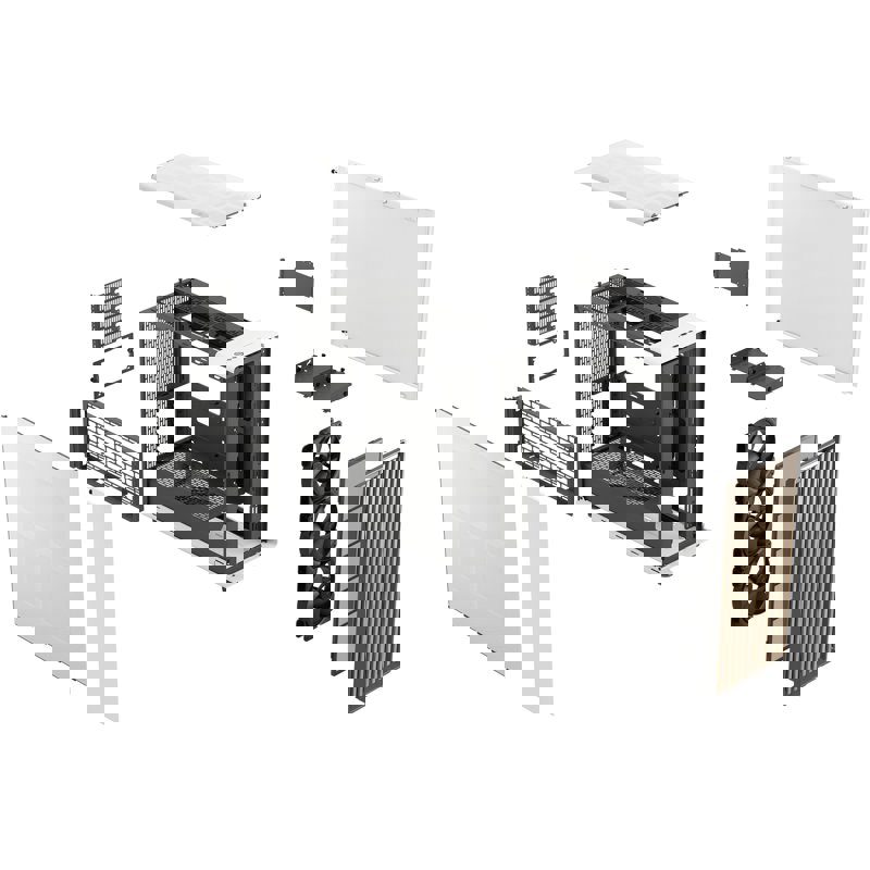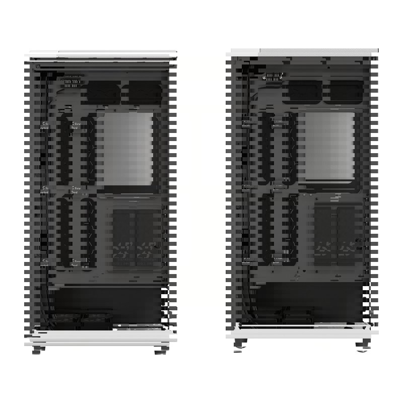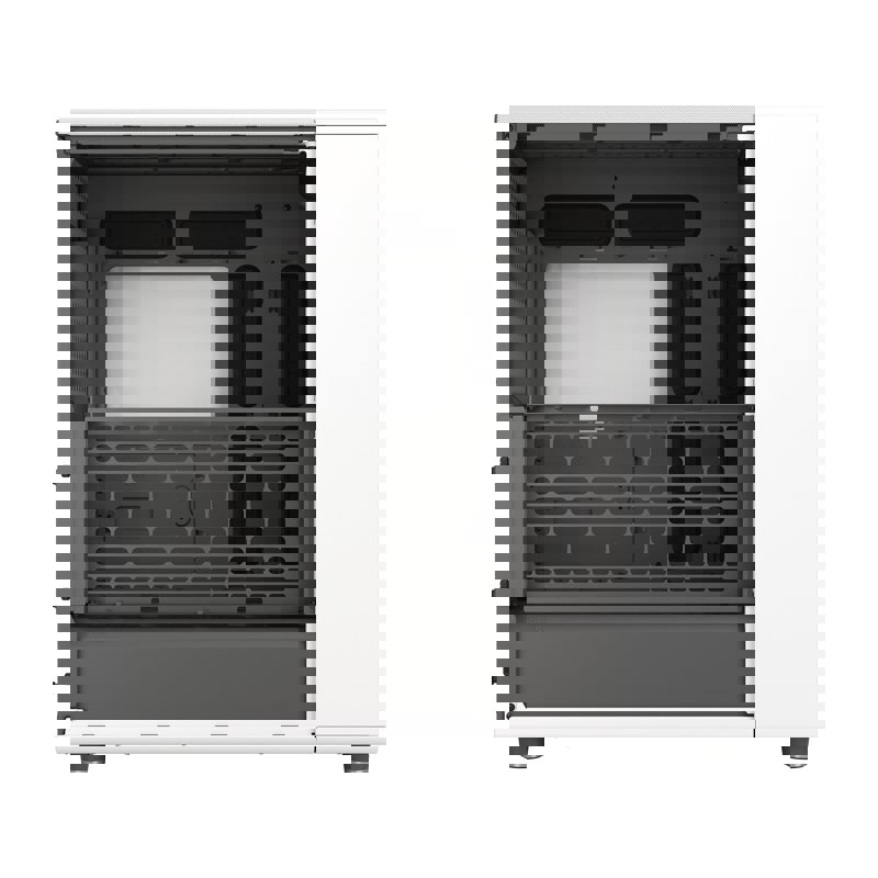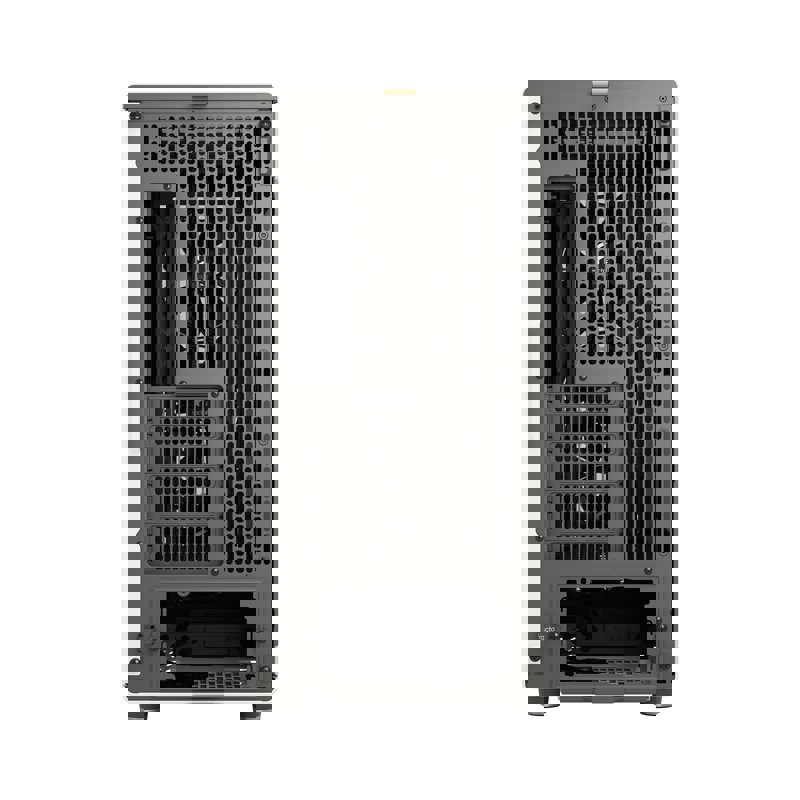 Корпус разработан с учетом удобства пользователя. Съемные панели (боковые, передняя и верхняя) обеспечивают легкий доступ к внутренним компонентам. Внутренняя компоновка интуитивно понятна, а фиксированные точки для кабелей и удобные крепления для накопителей упрощают процесс сборки.