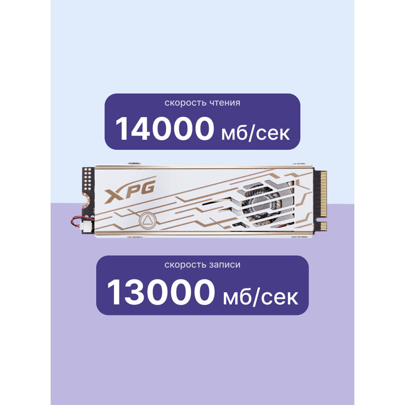 Скорость последовательного чтения – 14 000 МБ/с, записи – 13 000 МБ/с, что в 2 раза быстрее PCIe 4.0 SSD. Это позволяет мгновенно загружать игры, 4K-видео и тяжелые приложения, сокращая время ожидания до минимума.