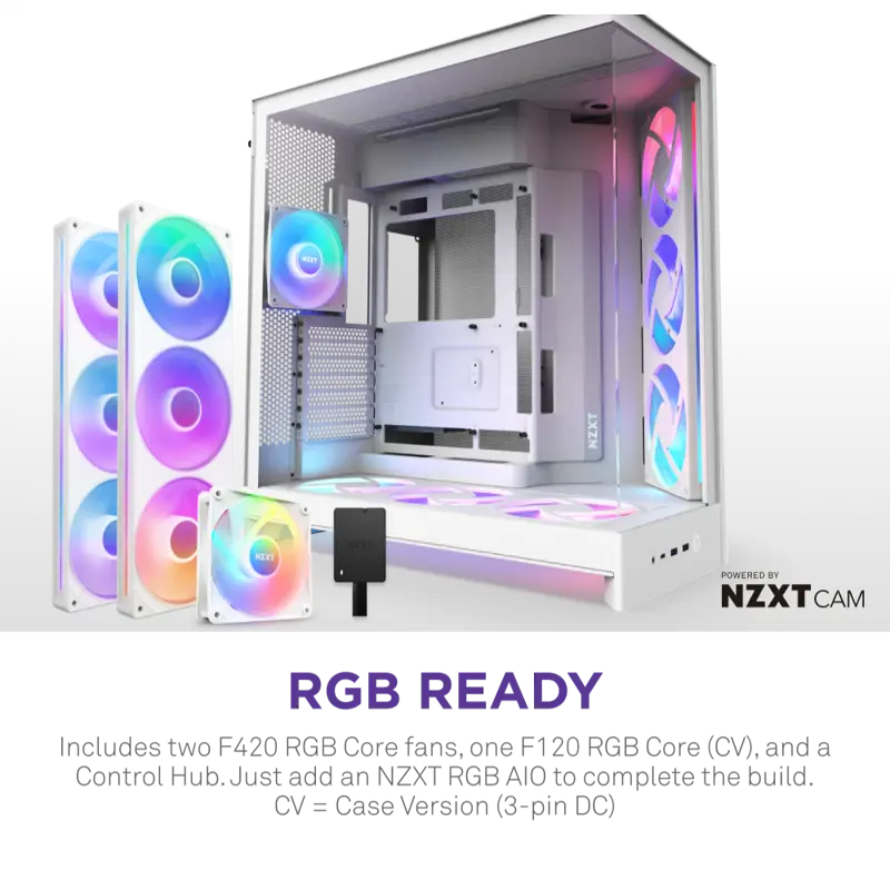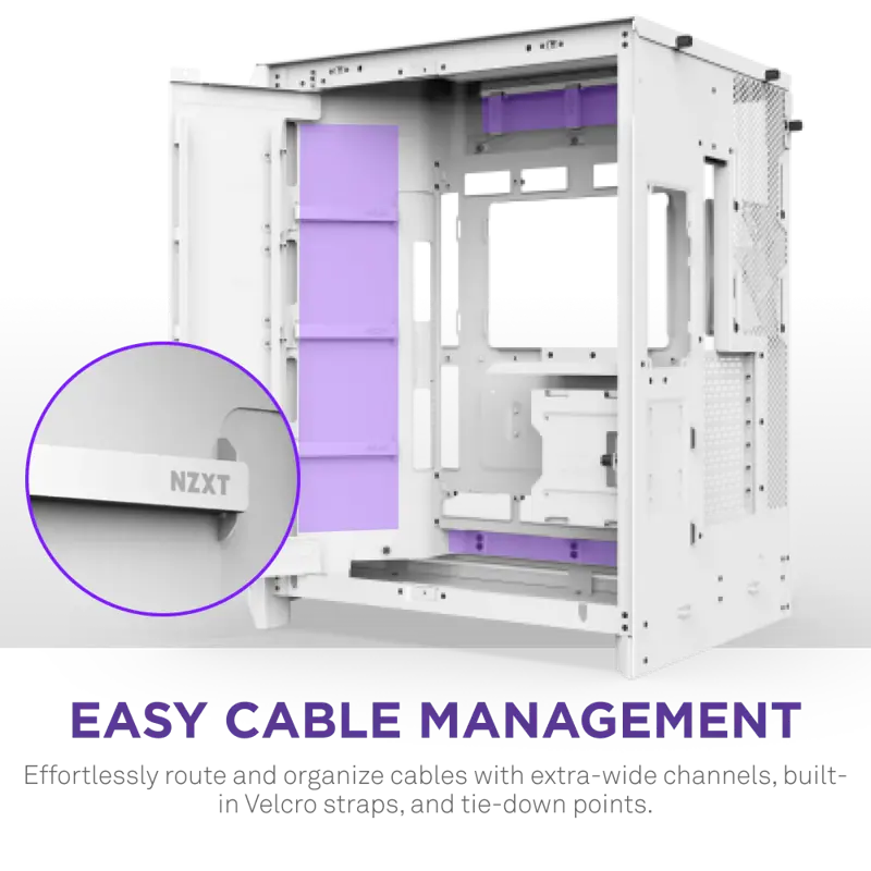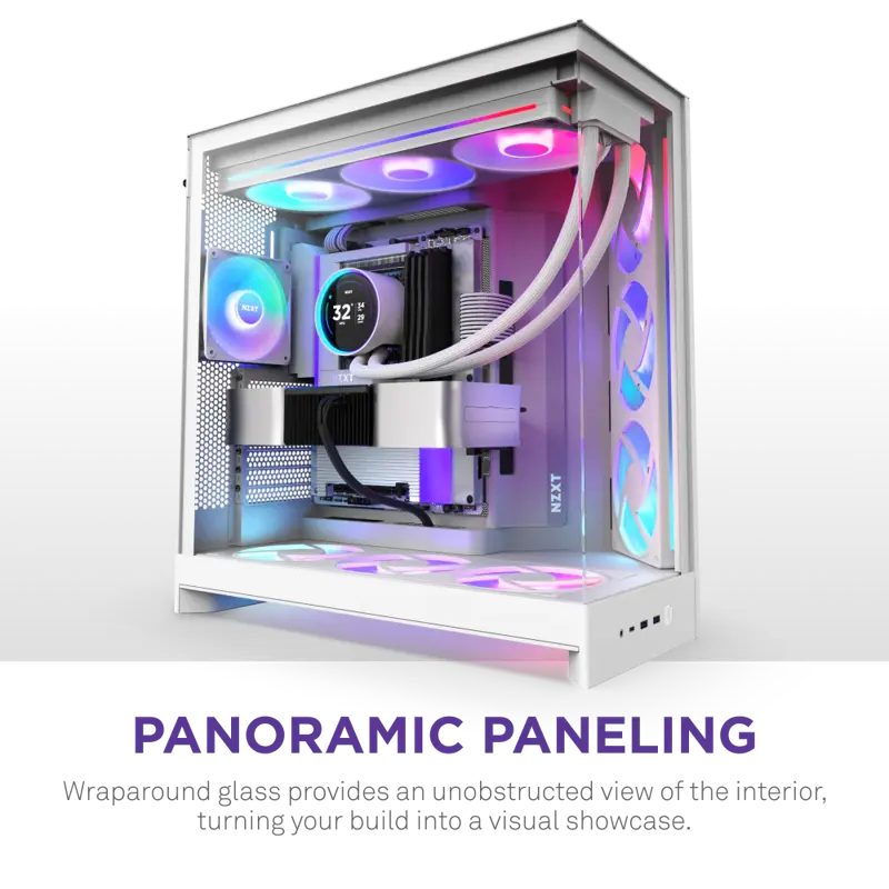Корпус NZXT H9 Flow RGB+ White (CM-H92FW-P1) — это сочетание передовых технологий охлаждения, расширенных возможностей настройки подсветки и стильного дизайна. Модель выполнена в белом цвете и оснащена прозрачными панелями из закалённого стекла, подчёркивающими визуальную привлекательность и аккуратность сборки.