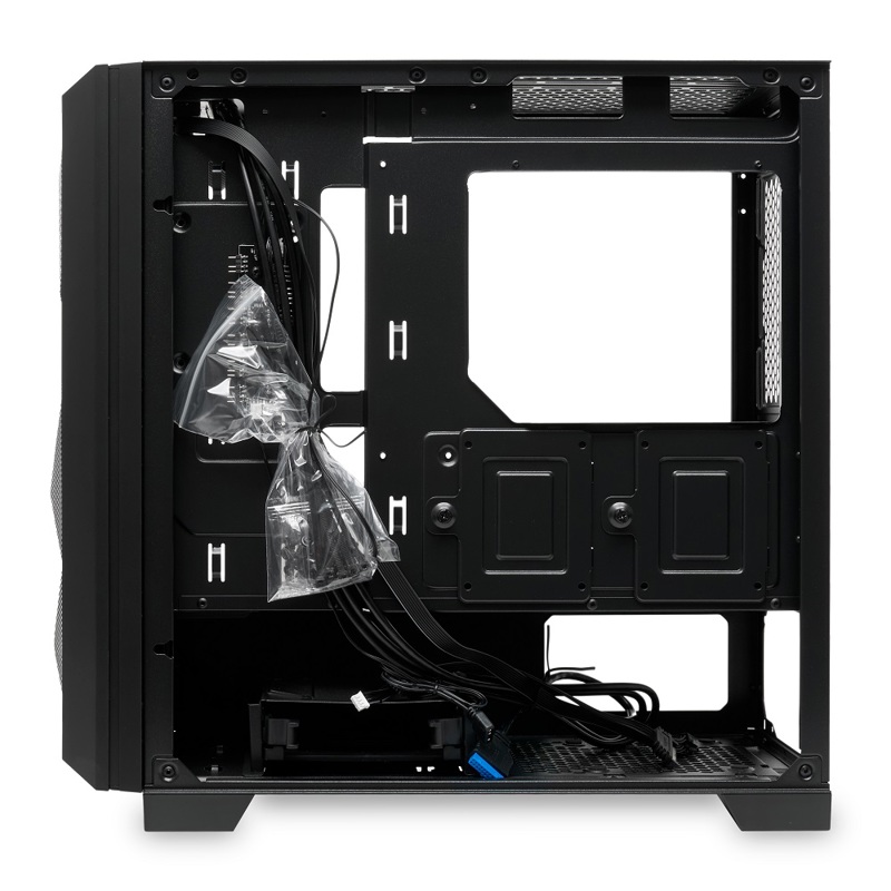 Хотя корпус поставляется без вентиляторов, он поддерживает установку дополнительных кулеров на переднюю, верхнюю и заднюю панели. Сетчатая передняя часть обеспечивает приток воздуха и способствует эффективному охлаждению системы.
