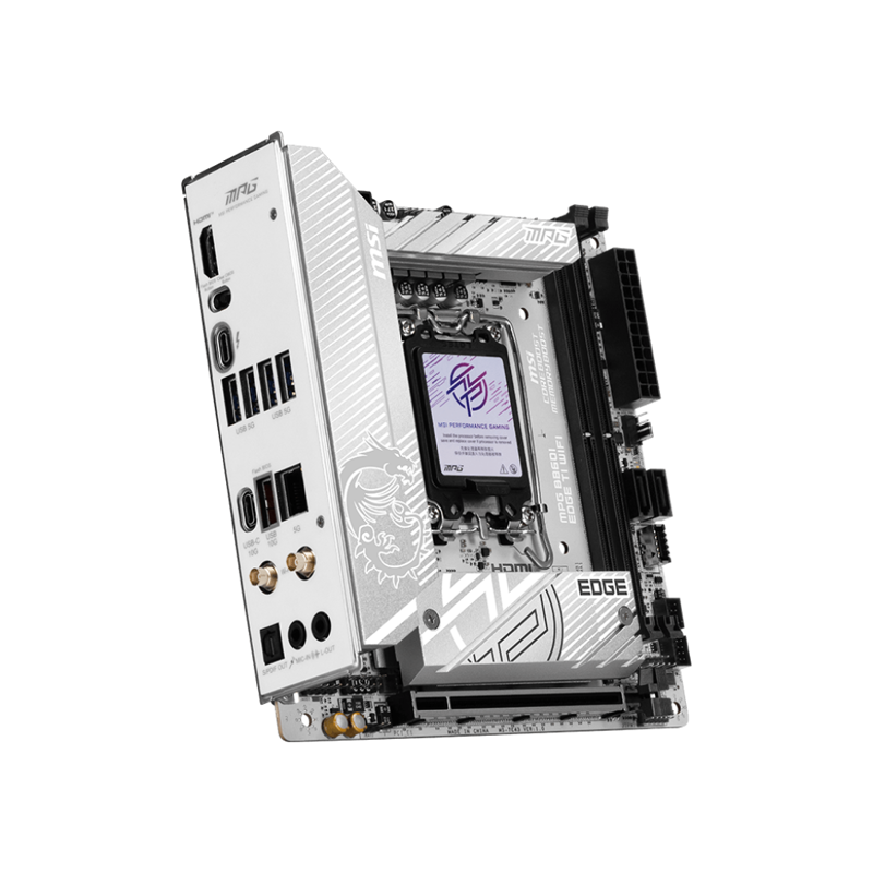 MSI MPG B860I EDGE TI WIFI станет отличным выбором для создания миниатюрного и мощного игрового или рабочего ПК, сочетающего высокий уровень производительности и простоту сборки.