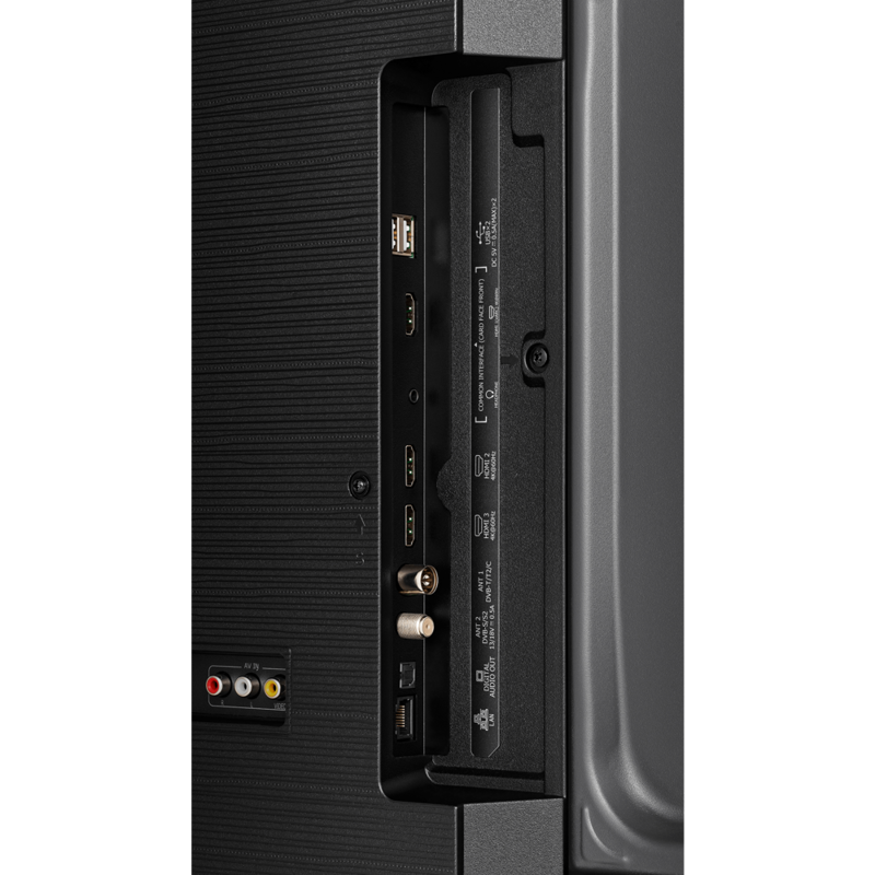 Телевизор оснащен тремя HDMI-разъемами и двумя USB-портами, что позволяет подключать различные внешние устройства, такие как игровые консоли, Blu-ray плееры, флеш-накопители и другие.