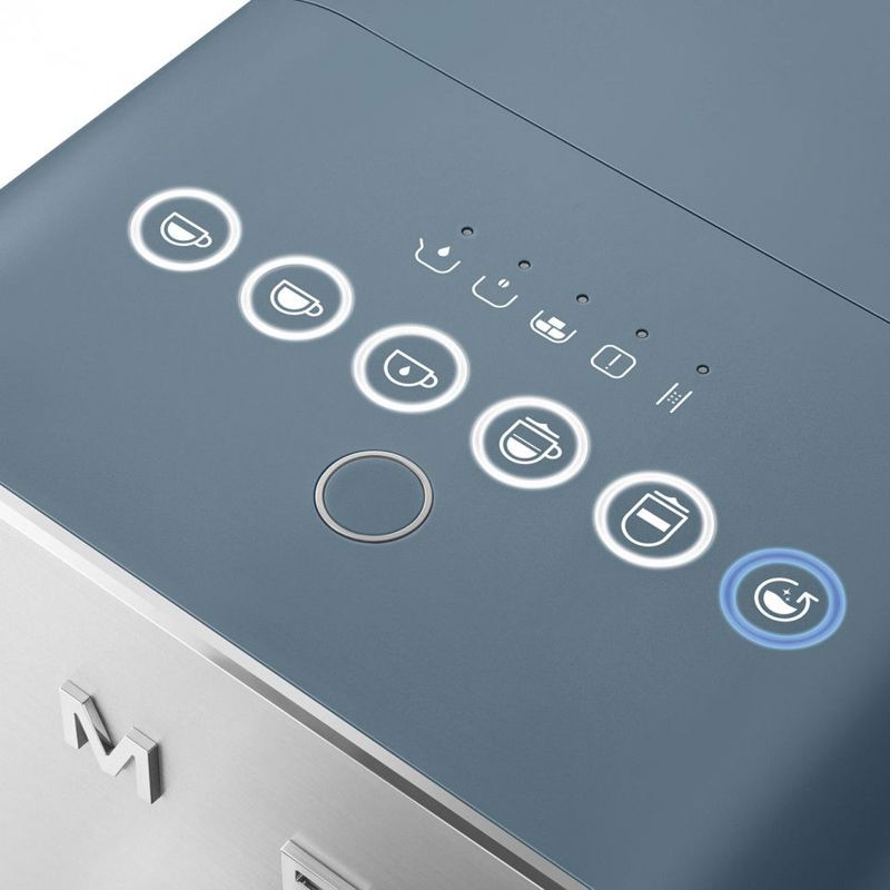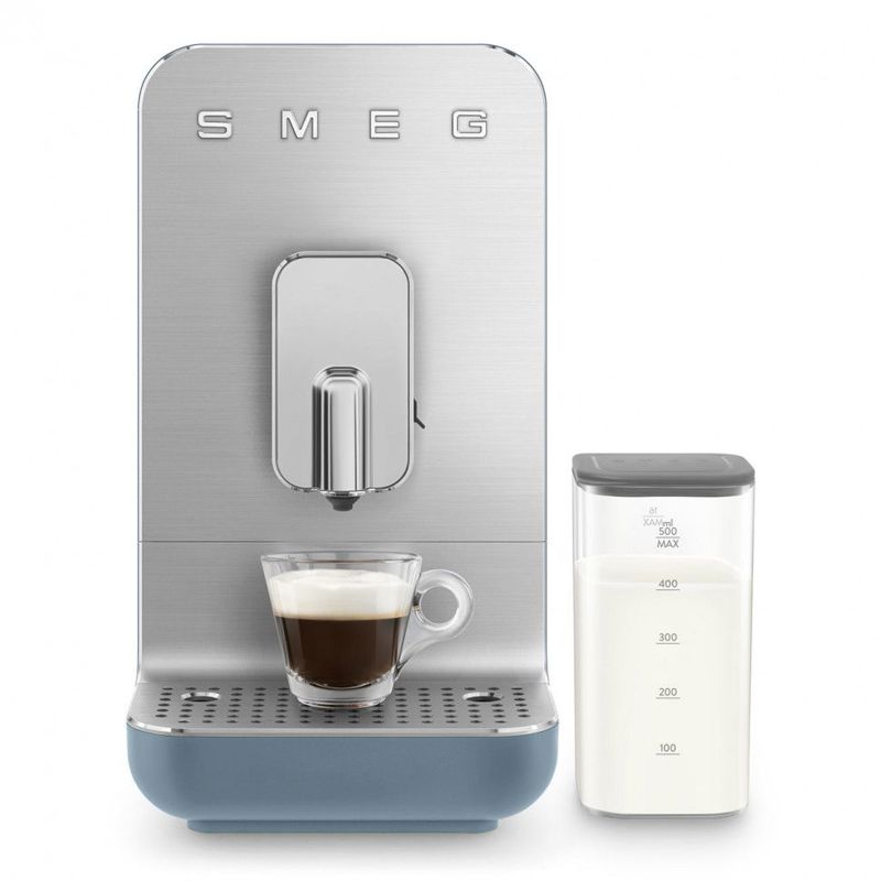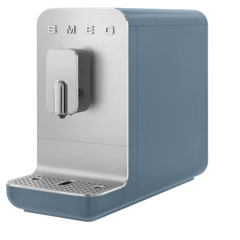 Автоматическая кофемашина SMEG BCC13SBMEU привлекает внимание элегантным исполнением в цвете «синий шторм». Матовая отделка корпуса из пластика и полированная алюминиевая фронтальная панель создают изысканный внешний вид, который гармонично впишется в любой современный интерьер.