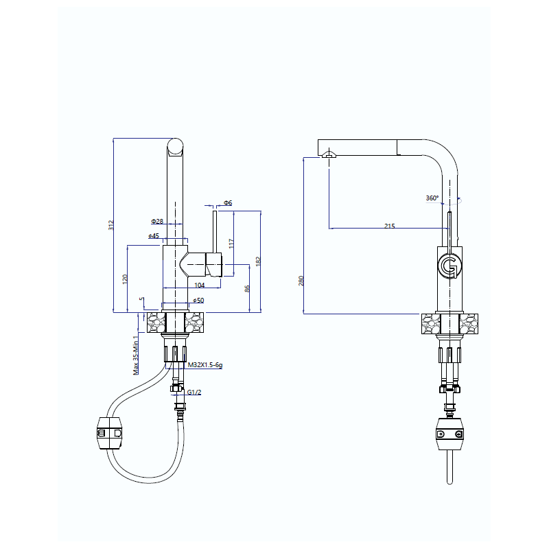 Нержавеющая сталь и Г-образная форма излива придают смесителю современный и элегантный вид, который гармонично впишется в любой кухонный интерьер. Выдвижная лейка делает смеситель универсальным для различных задач на кухне. Покрытие из нержавеющей стали облегчает уход за смесителем, так как оно устойчиво к пятнам и отпечаткам пальцев, сохраняя привлекательный внешний вид на протяжении многих лет.