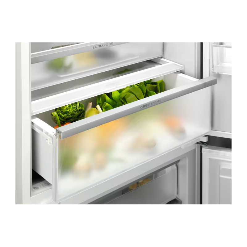 Это современный встраиваемый комбинированный холодильник с верхним расположением морозильной камеры. Он сочетает в себе передовые технологии для обеспечения эффективного хранения продуктов, удобства управления и значительной экономии энергии. Благодаря системе No Frost в обеих камерах и интеллектуальным функциям организации пространства, этот холодильник создан для комфортного использования в повседневной жизни.