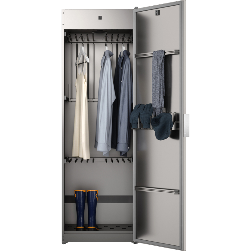 Технология вентиляционной сушки основана на постоянной циркуляции воздуха: влажный воздух удаляется через вентиляционный канал, а его место занимает свежий, нагретый до заданной температуры. Это обеспечивает равномерное и деликатное высыхание вещей без скручивания или сминания. Такой метод исключает необходимость конденсации влаги внутри прибора, что делает его особенно эффективным для сушки одежды на вешалках, включая костюмы, платья и верхнюю одежду, без риска деформации или усадки.