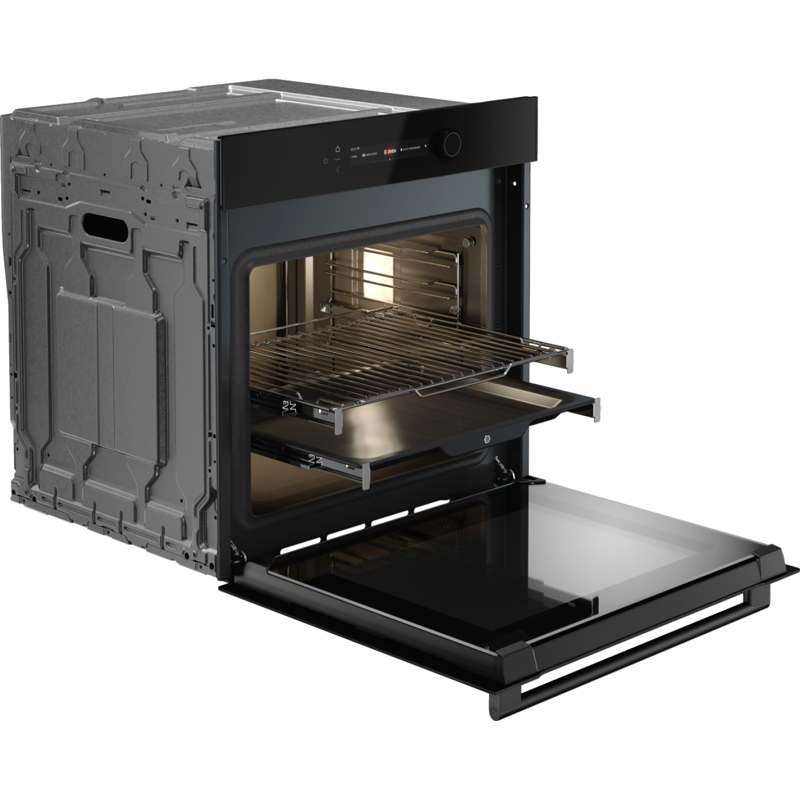 Особое внимание уделено качеству материалов и технологий. Телескопические направляющие обеспечивают удобное извлечение противней, делая процесс загрузки и выгрузки блюд легким и безопасным. Система плавного открытия и закрытия дверцы минимизирует шум и повышает безопасность при эксплуатации. Термозонд измеряет температуру непосредственно внутри продукта, исключая необходимость частого контроля готовности блюда вручную.