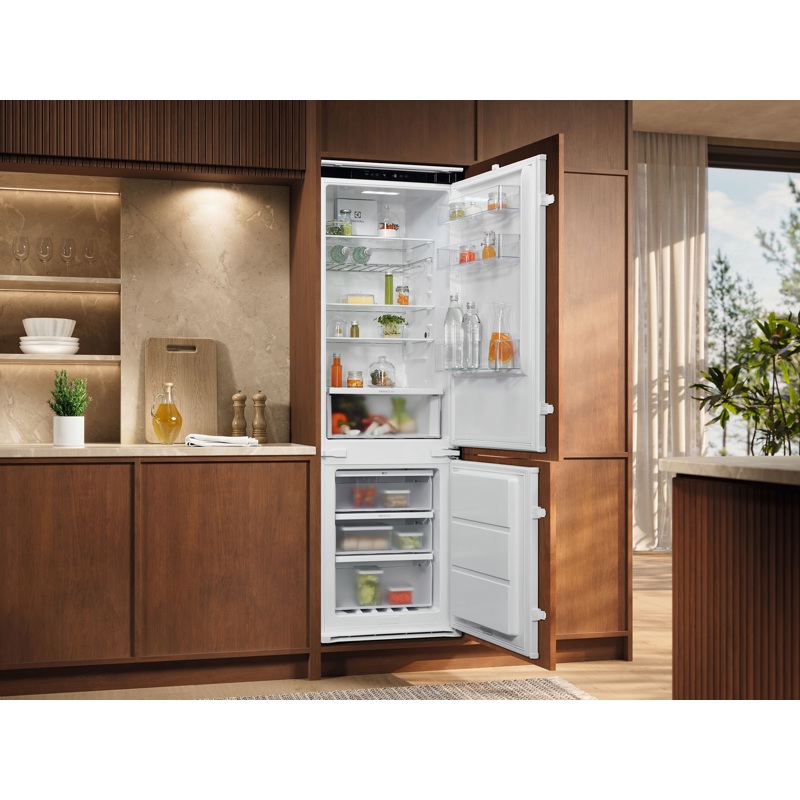 Electrolux E7TNGE18S выполнен в элегантном белом цвете, гармонично вписываясь в современный интерьер кухни. Его компактные размеры позволяют удобно разместить устройство даже в небольших помещениях, сохраняя ощущение простора и свободы передвижения. Благодаря встроенной конструкции, ваш новый холодильник легко интегрируется в мебель, обеспечивая единый дизайн интерьера и экономя пространство.