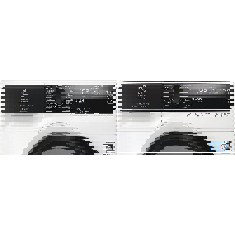 Большой цифровой ЖК-дисплей делает управление наглядным и удобным, позволяя легко выбирать программы и контролировать ход стирки. Панель управления на английском языке отличается понятной навигацией.