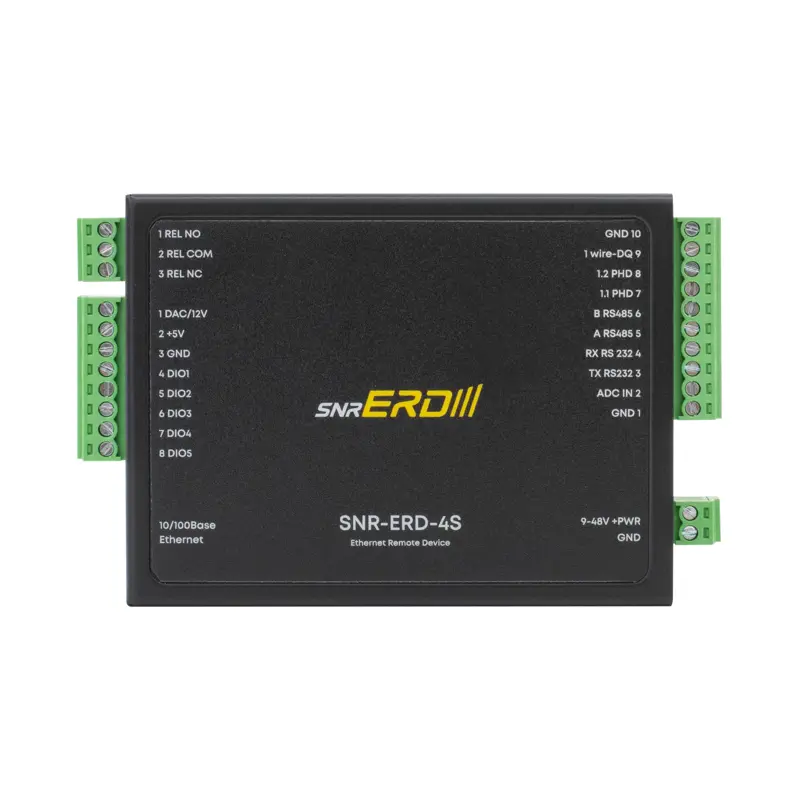 Устройство удалённого контроля и управления SNR-ERD-4s — это компактное и надёжное решение для мониторинга и управления внешними устройствами в составе сетевой или промышленной инфраструктуры. Прочный металлический корпус и возможность крепления на DIN-рейку делают его удобным для установки в распределительные шкафы и щиты автоматики.