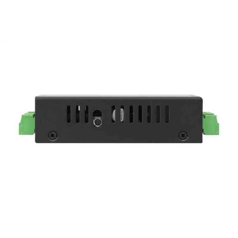 Прочный металлический корпус обеспечивает защиту в промышленных условиях. Устройство рассчитано на круглосуточную работу в расширенном диапазоне температур. Крепление на DIN-рейку упрощает монтаж и повышает надёжность установки.