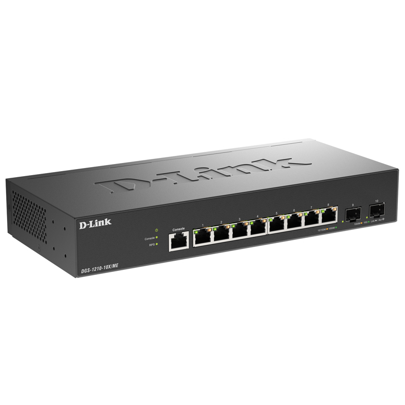 Коммутатор D-Link DGS-1210-10X/ME создан для сетей Metro Ethernet. Предусмотрено 8 портов 10/100/1000 Мбит/с и 2 порта 10G SFP+ для высокоскоростных соединений. Защита от статического электричества 6 кВ и функции безопасности защищают сеть. Устройство поддерживает функцию Auto Voice VLAN, приоритет голосового трафика.