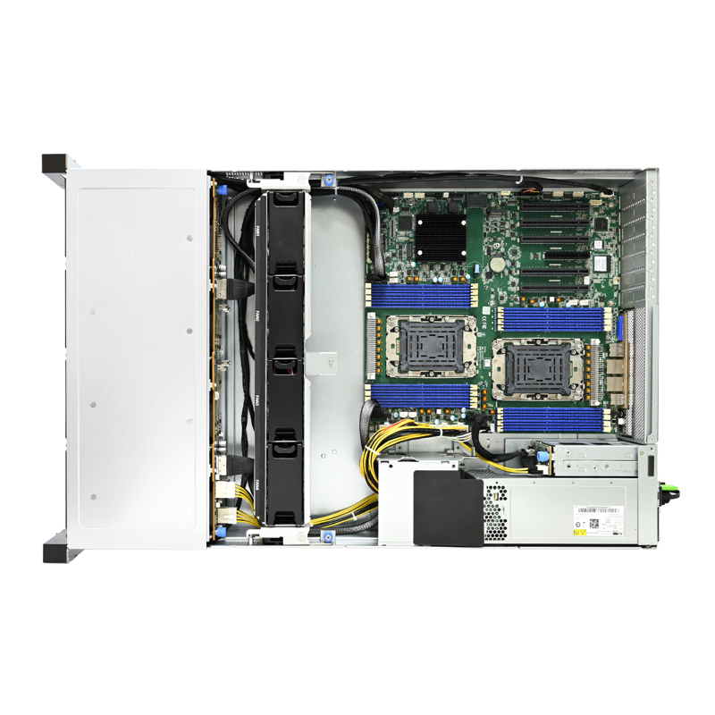 Устройство выполнено в форм‑факторе 2U, что обеспечивает эффективное использование пространства серверной стойки. Конструкция предусматривает удобный доступ к компонентам для обслуживания и масштабирования.
